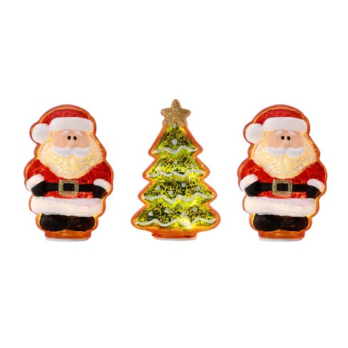 Mr Christmas Santa Claus And Christmas Tree Mercury Glass Led Tabletop Decorations 4 Set Of 3 Target